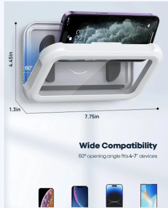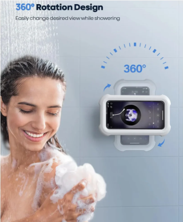 Introducing our innovative and unique HydroHold Shower Phone Holder with 480° rotation! This patented waterproof holder offers angle adjustability and easy retraction, ensuring the perfect screen display. Made with high-quality materials, it's IPx6 waterproof and anti-fog, making it ideal for bathrooms and kitchens. The 3mm HD touchable screen allows easy access to your phone while you enjoy a relaxing shower. Suitable for most phones up to 6.8 inches. No drilling required for installation.